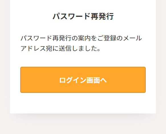 ご入力いただいたメールアドレスに再発行されたパスワードが送信されます。